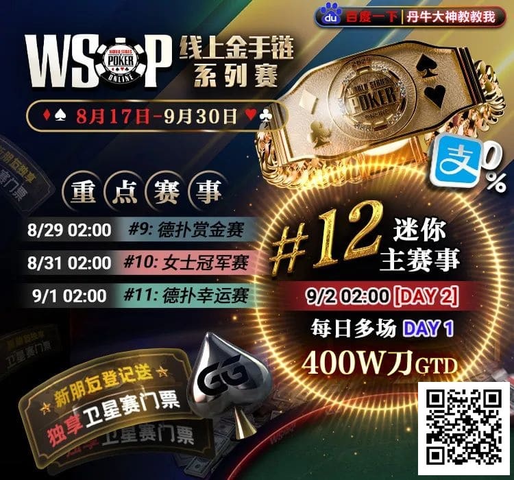 2025年最受期待的线上扑克盛典——《GGPoker WSOP线上金手链系列赛》即日起至9月30日重磅开打,共33条金手链等待颁发!