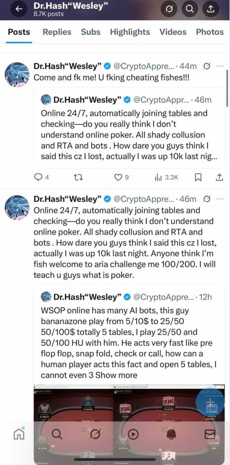 多账户操作、数据挖掘软件横行、AI辅助开始萌芽,而“Ghosting”(代打)、“Collusion”(伙牌)等阴影也频频出现在高额桌上。