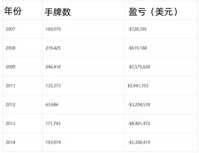 数据显示,他在那里累计亏损超过2070万美元(超1.4亿元),每一手牌似乎都在走下坡路。