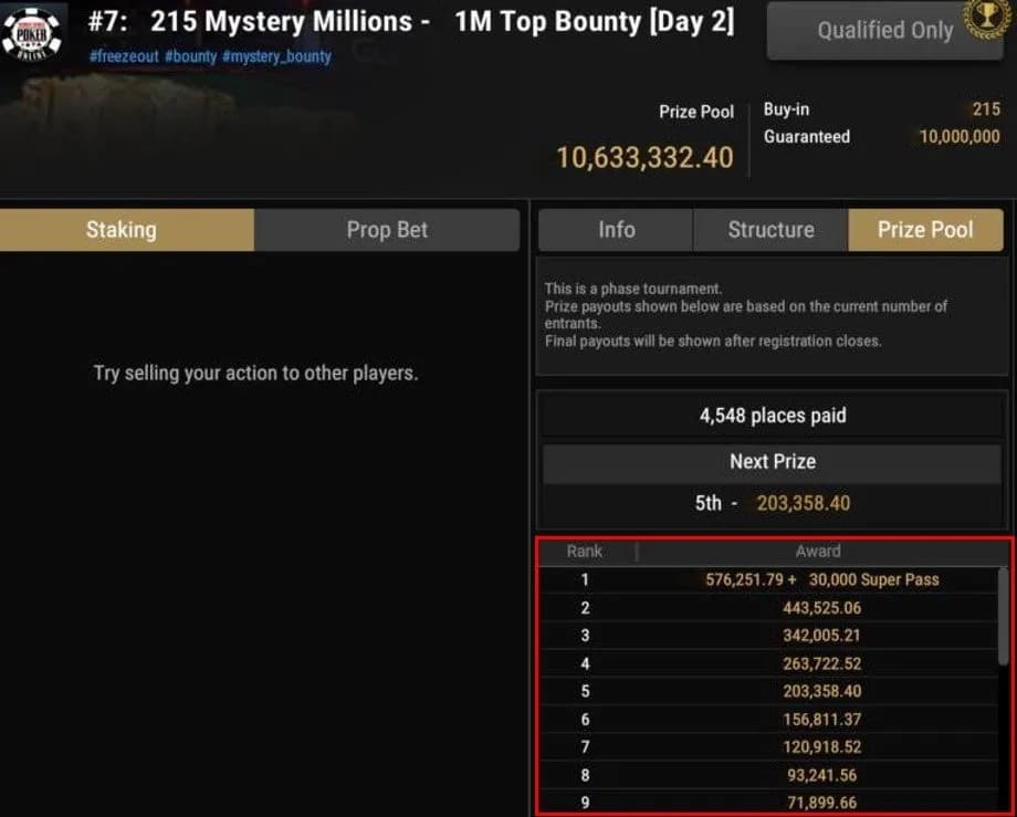 决赛桌的奖励分布差距极大: