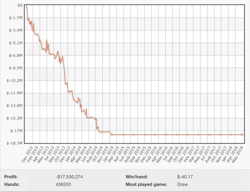 凭借 YouTube 内容走红,但在升级至高额桌后连续失利,同时涉足体育博彩亏损严重,近期转战中小级别赛事。