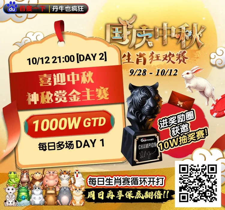 节日氛围与扑克热情继续在十月交织,即日起至10月12日,《国庆中秋生肖狂欢赛》总保底88,000,000火热接力登场!