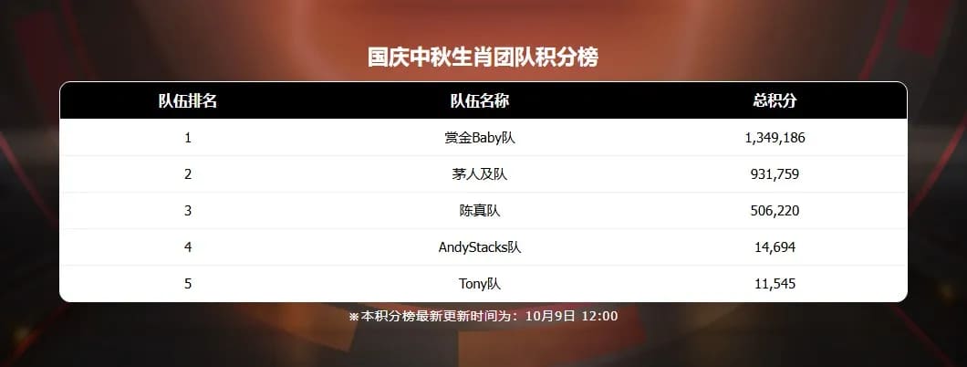 与此同时,【国庆黄金周团队争霸赛】的战况也进入白热化阶段。