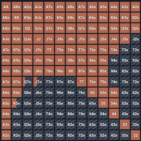 不过,即使在今天的牌局中,你偶尔还是会遇到一个坚守“紧就是对的”这句老话的Nit玩家,他们坚持只玩自己范围顶端的牌。