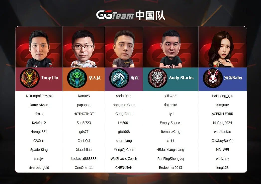而今年赛事最大亮点之一,无疑是由五位GGTeam导师茅人及、Tony、陈真、Andy Stacks与赏金Baby领衔的【国庆黄金周团队争霸赛】。