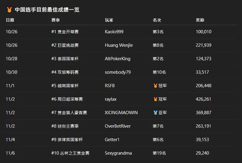 10月26日,在GGPoker开打的APT线上赛进行一周后,终于一口气诞生两位国人冠军!