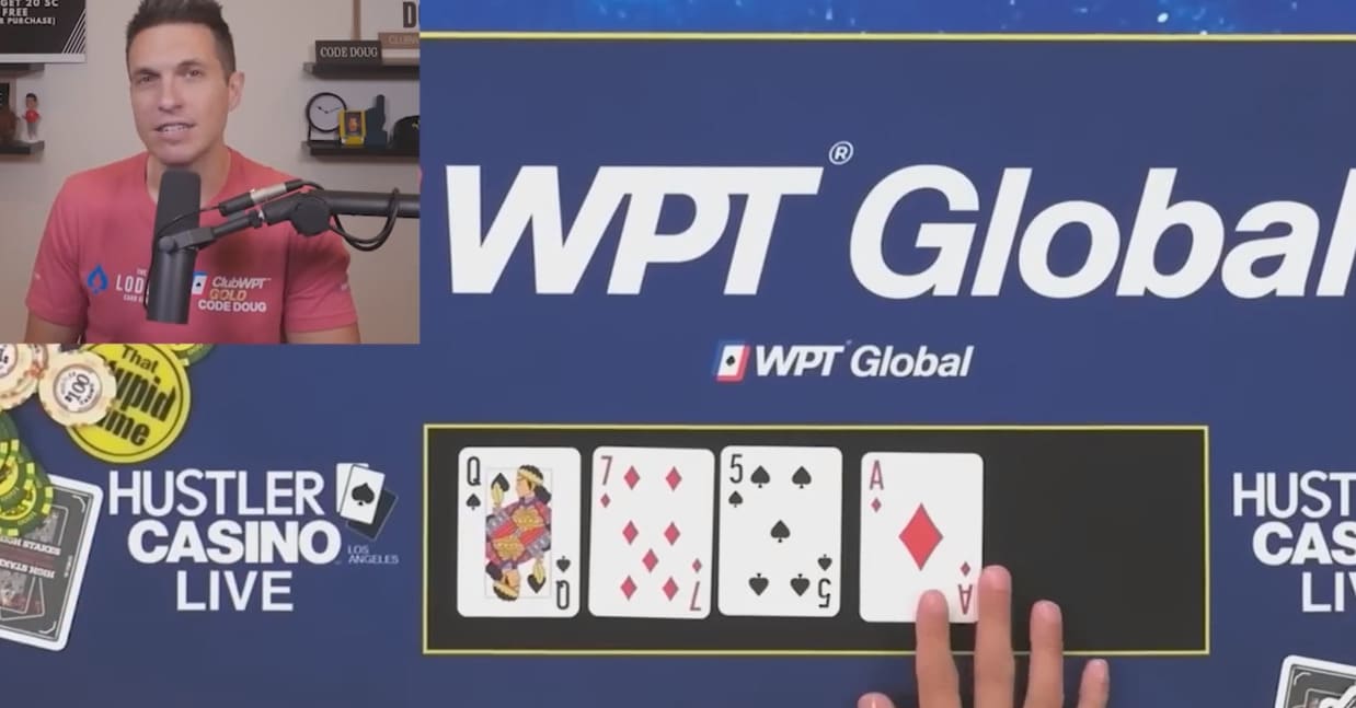 这个超池下注就是在传达,他要么有顺子或是同花,要么就是在纯偷鸡。