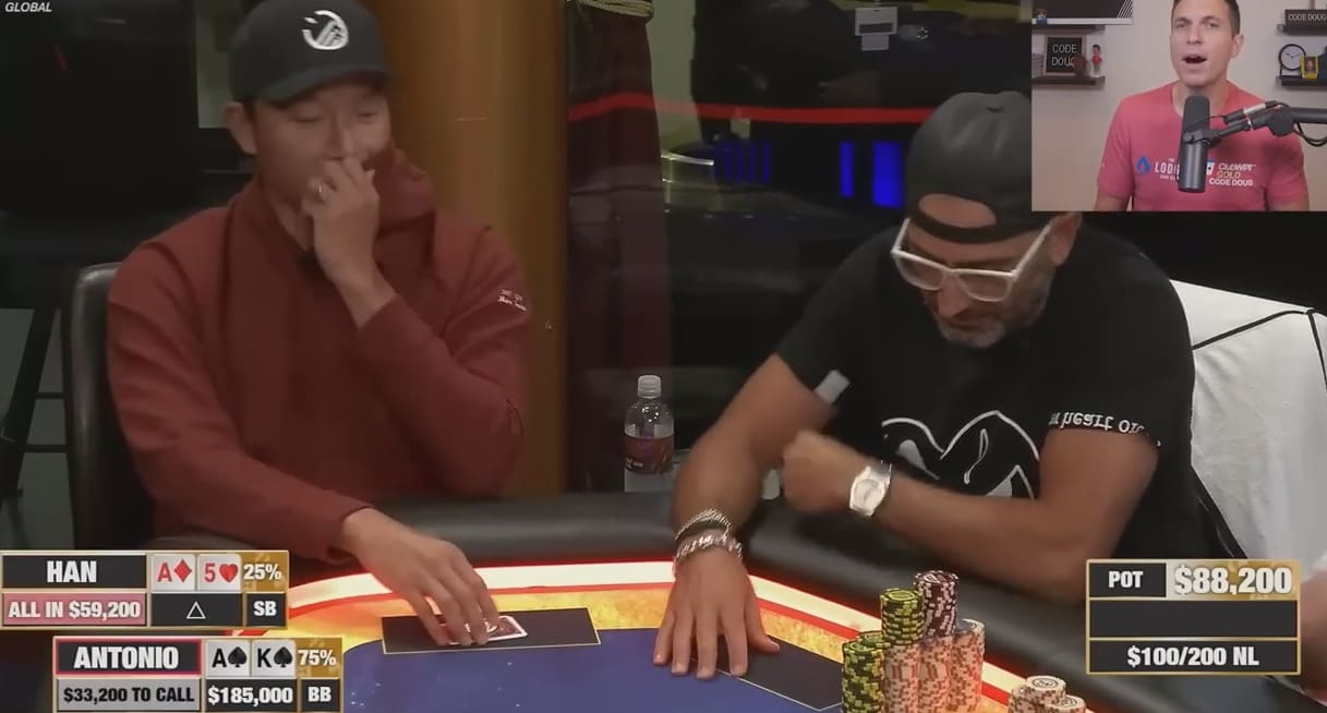 Han决定反推回去,但是魔术师不相信他有牌,跟注。