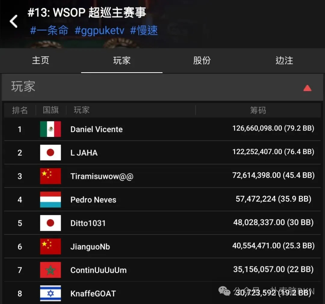 至于第八的以色列玩家KnaffeGOAT(19.2BB)虽码量最少,但本周也刚获得GG大师豪客赛第八名,同样不容小觑。
