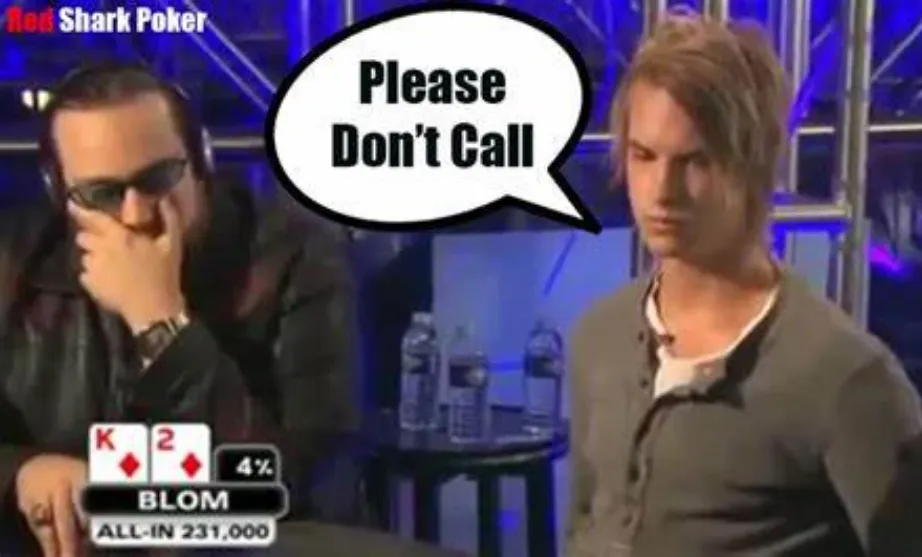 这样做能让我们在河牌圈全下时不至于超过底池太多。这是一个微妙的过程——你不得不透露出牌力,但又不能过分张扬,否则对手可能会意识到自己碰上了最坏的情况而弃牌。