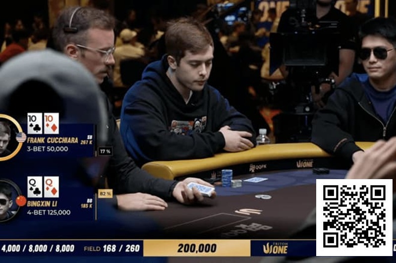 "这牌面太疯狂了,"Triton解说员Randy Lew评论道。由于Li记分牌略多,Cucchiara仅剩1个大盲注,虽稍作挣扎但仍遭淘汰,随后他选择参加B组重赛。